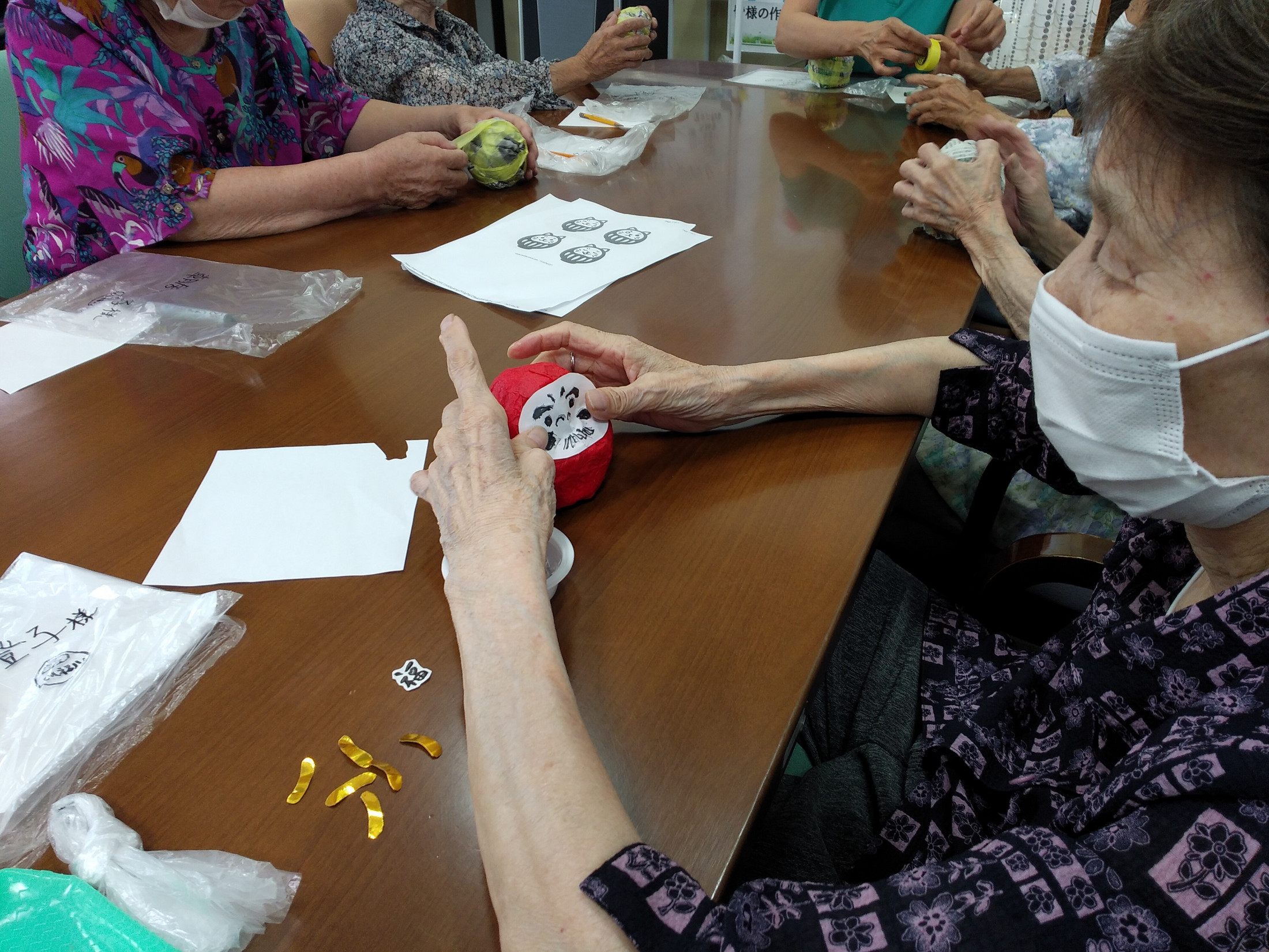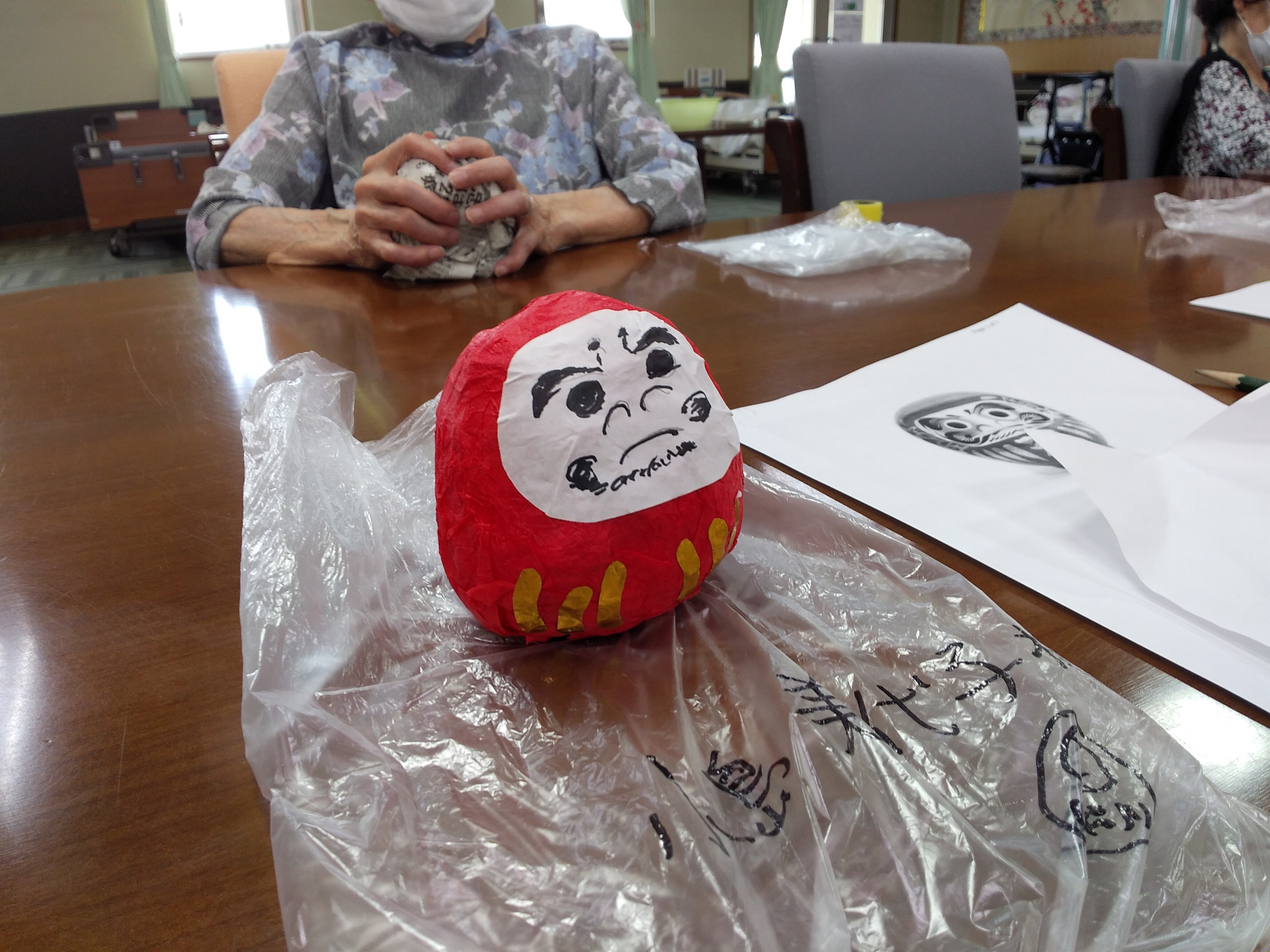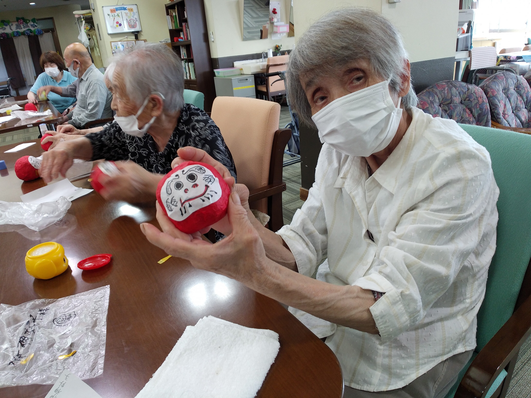 デイサービスDAY SERVICE 2021.08.13 だるま作り だるまは、倒れても何度でも起き上がることから 「七転び八起き」「無病息災」「家内安全」などを祈願する縁起物としての意味を持つようになったといわれています。 「コロナに負けるな!!」「みんなの健康を願って作りました」