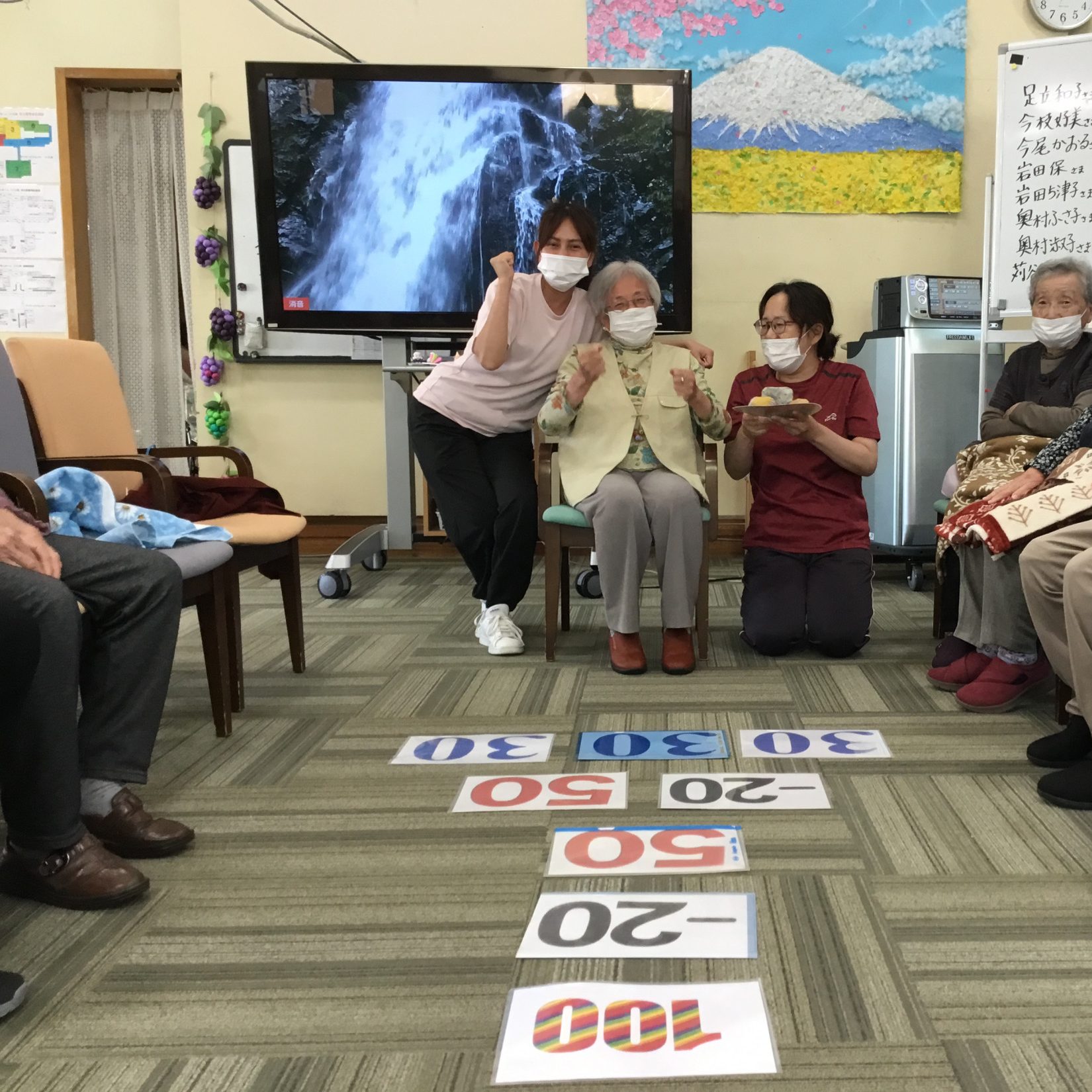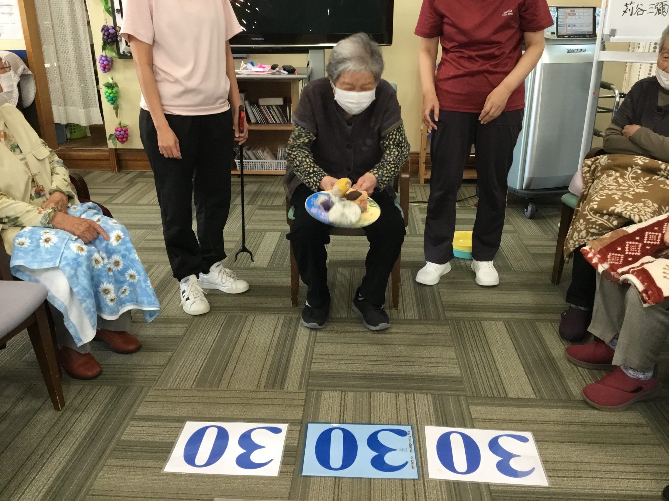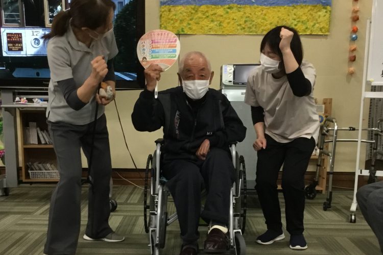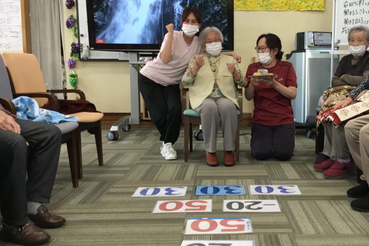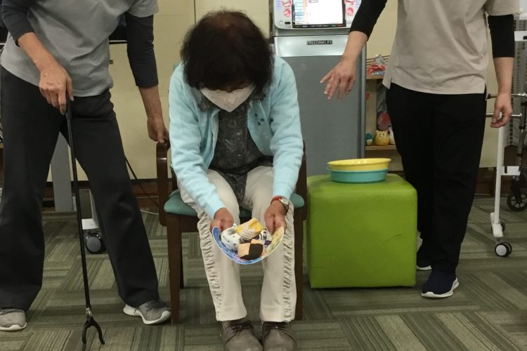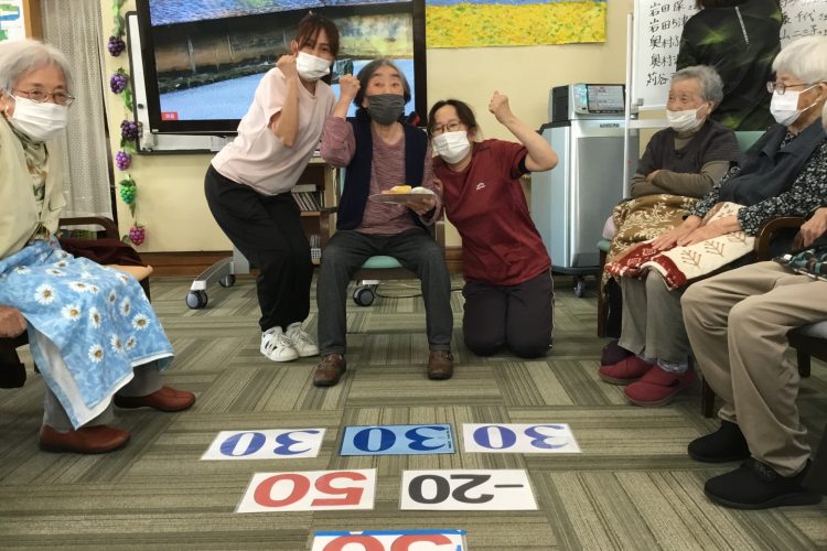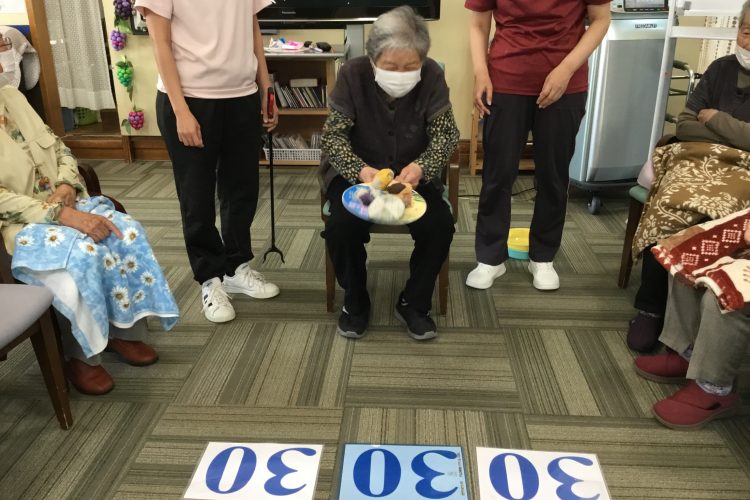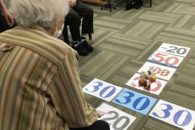 運動レクリエーションではお手玉飛ばしゲームを行いました!