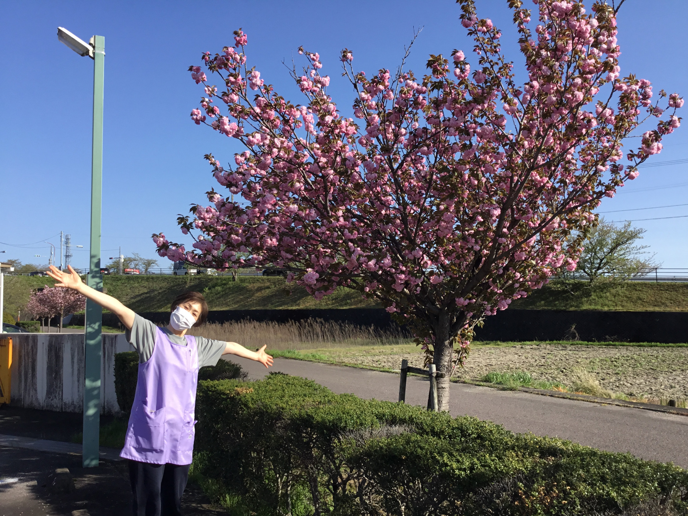 デイサービスの前にきれいな八重桜が満開です♬