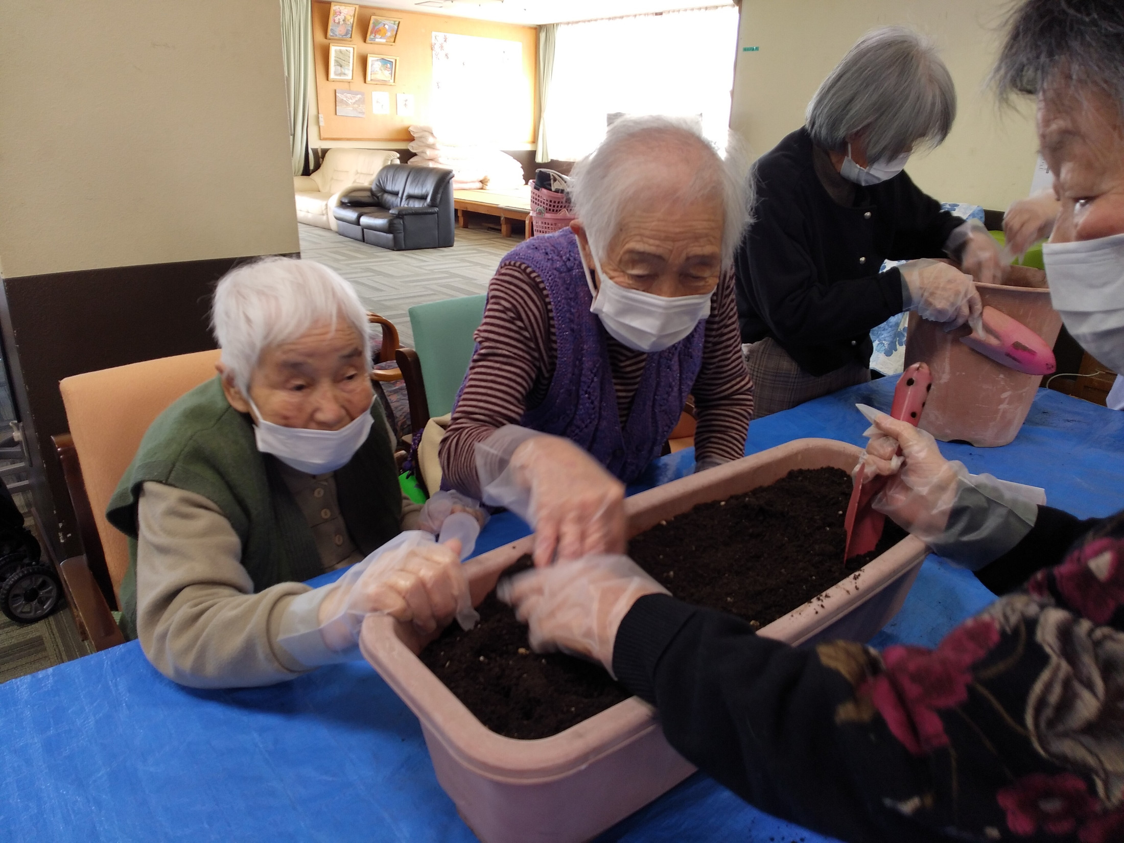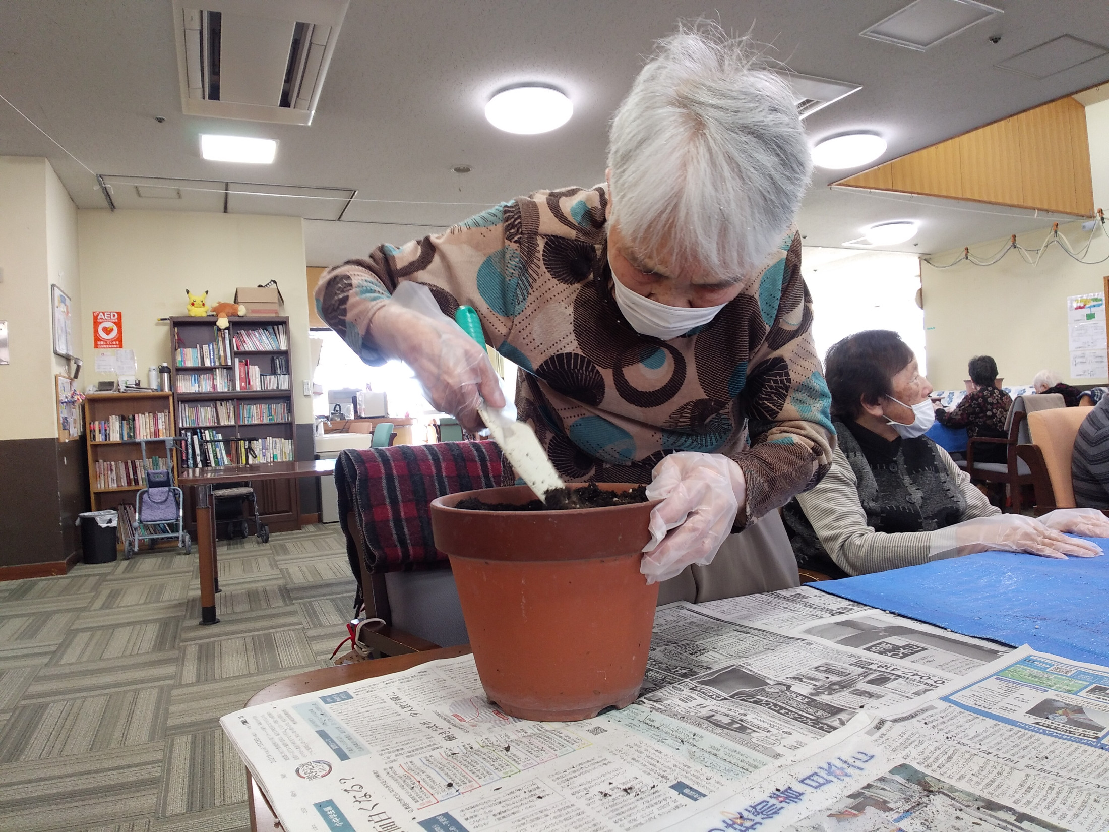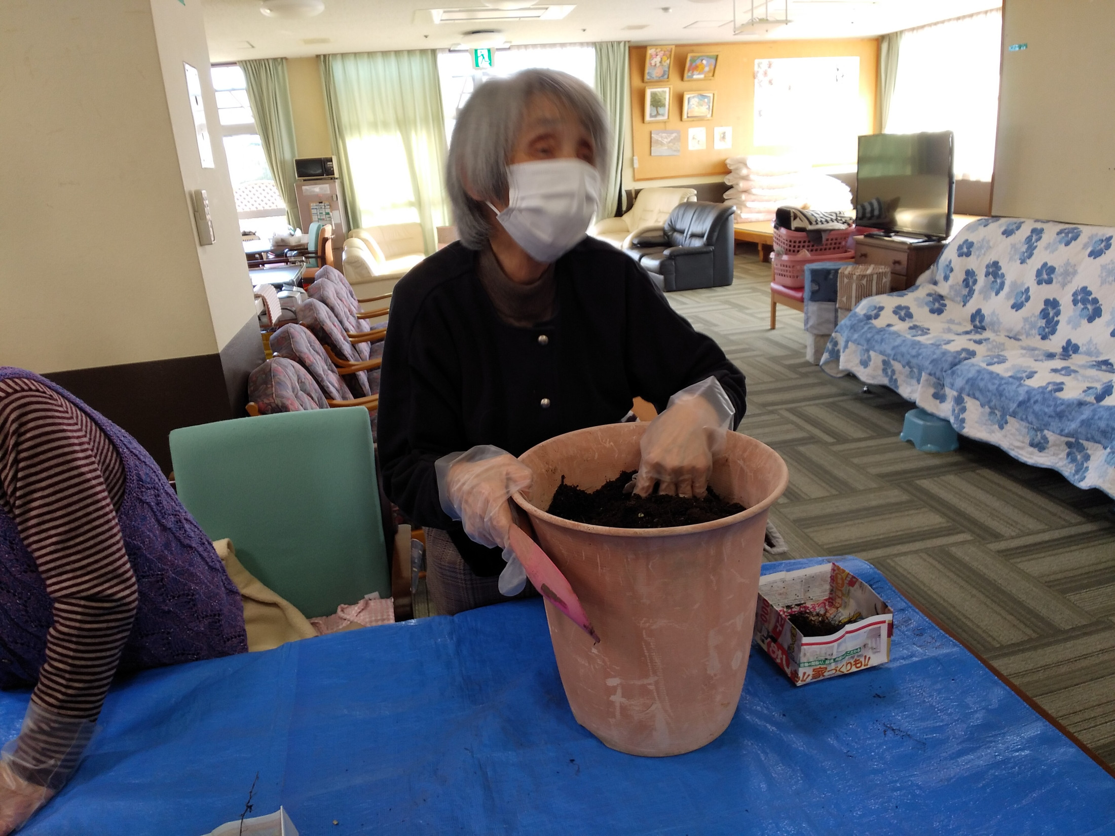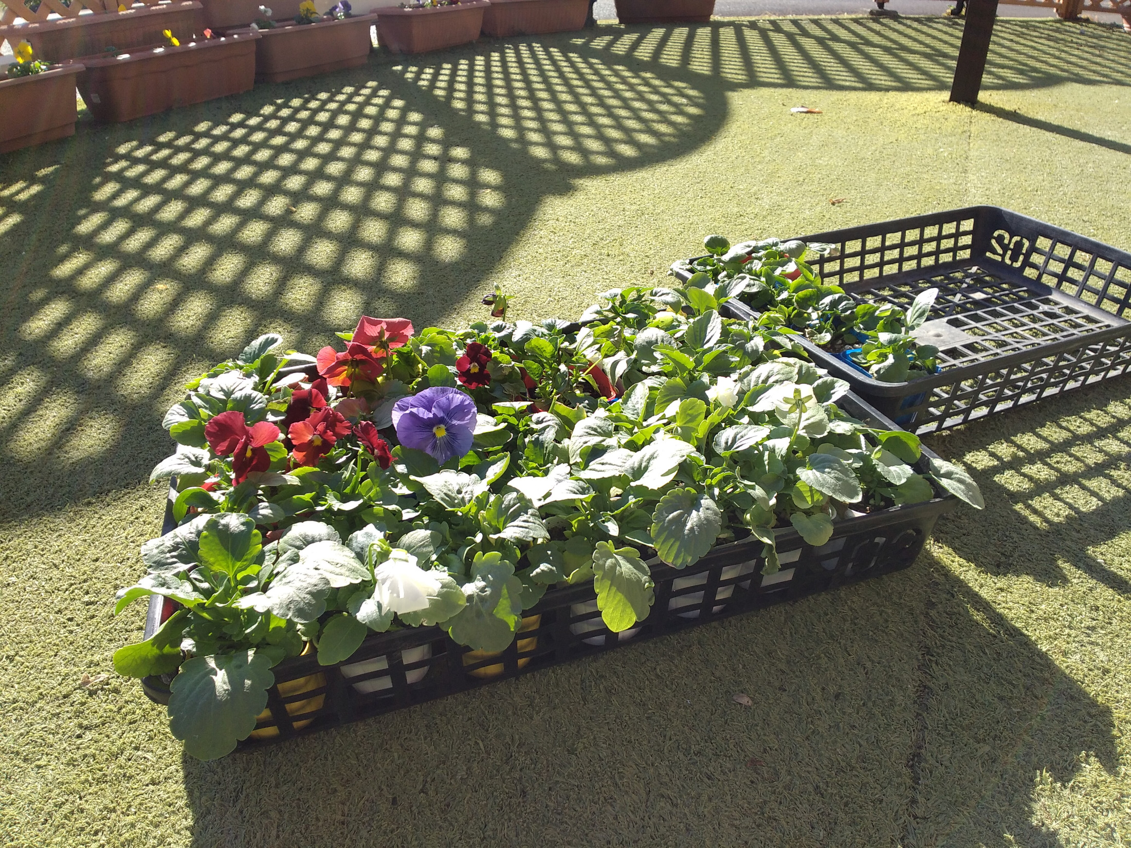今日は、天気もよく皆さんとお花の苗入れを行いました。